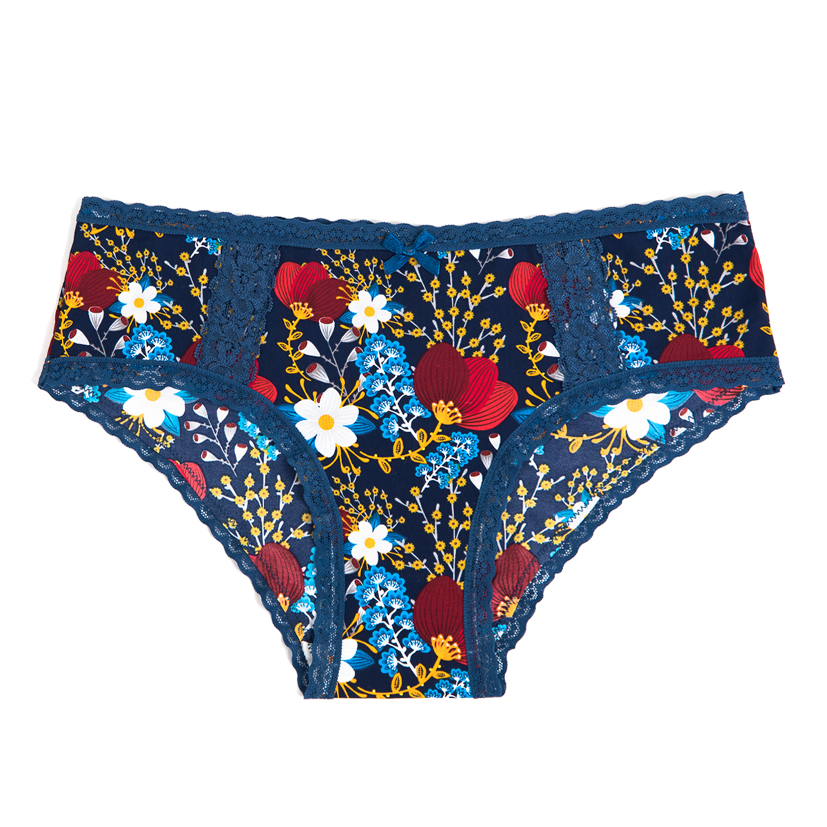 One of our most popular styles! The Arden Floral bikini with its super soft nylon, this is seriously one of the softest pairs of undies that you'll ever find. Bikini Nylon Lace waistband 85% Nylon - 15% Spandex 100% Cotton gusset lining Hand Wash Imported "Fits as expected" - According to customer feedback